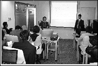 新波信息科技有限公司客戶服務中心咨詢事業(yè)部經(jīng)理劉軼杰在作講座,20余位企業(yè)資深主管、經(jīng)理到場聽課。