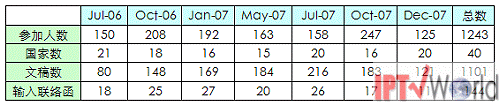 FG IPTV第七次會議共有來自全球近160名專家參加了會議,共收到文稿119篇。中國有20名專家參加了會議,提交文稿37篇,文稿主要集中在體系架構(gòu)、需求、安全、服務(wù)質(zhì)量、中間件等方面。此次會議的所有輸出文檔將輸入到相應(yīng)的研究組(SG)當(dāng)中。此次會議由于要對所有的輸出文檔進(jìn)行最后的整理、完善,因此日程非常緊張,每個工作組都幾乎每天工作到深夜,以便能夠保證所有輸出的工作文檔的質(zhì)量。