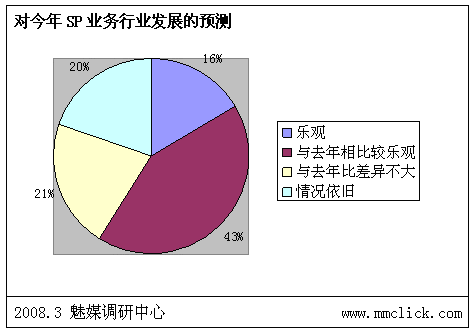 最近公布的空中網(wǎng)財(cái)務(wù)報(bào)表的數(shù)據(jù)顯示空中網(wǎng)總收入環(huán)比增長(zhǎng),結(jié)合之前廣東移動(dòng)推出:廣東移動(dòng)向重服務(wù)轉(zhuǎn)變 首推“6+1”服務(wù),SP行業(yè)可以說(shuō)是暖風(fēng)頻吹。魅媒無(wú)線行業(yè)調(diào)研中心隨機(jī)從3月3日到3月5日隨記電話采訪50多家全網(wǎng)以及廣東省網(wǎng)SP公司相關(guān)負(fù)責(zé)人,對(duì)最近的SP行業(yè)的政策調(diào)整進(jìn)行調(diào)查,有以下的數(shù)據(jù):