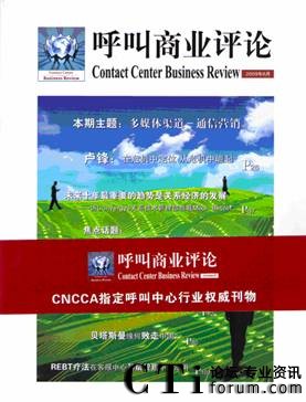 《呼叫商業(yè)評(píng)論》(Contact Center Business Review )是一本服務(wù)于呼叫中心行業(yè)企業(yè)高管人群的高端雜志,是CNCCA呼叫中心及客戶(hù)關(guān)系管理協(xié)會(huì)指定呼叫中心行業(yè)權(quán)威刊物,可作為高端客戶(hù)群體的行業(yè)指南,洞悉行業(yè)新舉措,法規(guī)新動(dòng)態(tài)的風(fēng)向標(biāo)。