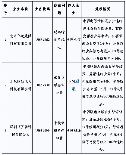 據悉,這3家增值電信企業(yè)是北京飛龍無限科技有限公司,存在明碼標價不規(guī)范問題;北京聯(lián)動飛天科技有限公司,未提供服務卻扣費;深圳市互動科技有限公司,未提供服務卻扣費。