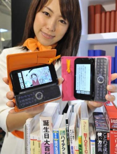 日本第二大電信服務(wù)商KDDI與東芝合作推出以“Biblio”命名的手機(jī),以電子書瀏覽器作為最大賣點(diǎn)。該機(jī)內(nèi)建7GB內(nèi)存,3.5吋觸摸式液晶顯示屏,外型及包裝設(shè)計(jì)都和Amazon Kindle相似,配備WIFI、510萬像素鏡頭及電子辭典功能。