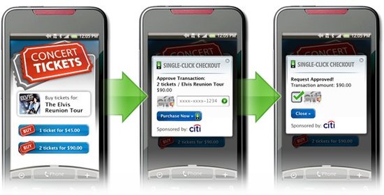 北京時(shí)間11月10日消息,據(jù)國外媒體報(bào)道,花旗銀行支持的Single-Click Checkout(singleclickcheckout.com)服務(wù)今天在舊金山的開放移動峰會(Open Mobile Summit)上推出,它是第一個(gè)為Android設(shè)計(jì)的信用卡結(jié)帳應(yīng)用程序。使用這項(xiàng)新服務(wù),商家可以接受來自任何移動用戶的信用卡付款。