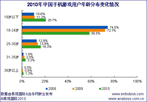 近期易觀(guān)國(guó)際、當(dāng)樂(lè)網(wǎng)聯(lián)合對(duì)手機(jī)游戲用戶(hù)進(jìn)行調(diào)研,推出《中國(guó)手機(jī)游戲用戶(hù)研究報(bào)告2010》,從中國(guó)手機(jī)游戲用戶(hù)結(jié)構(gòu)特征和用戶(hù)行為方面分析手機(jī)游戲產(chǎn)業(yè)發(fā)展三大空間: