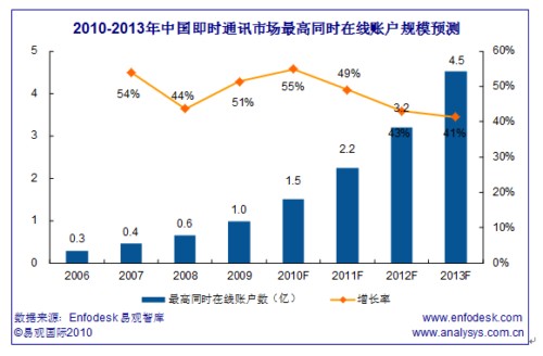 2013年中國IM市場(chǎng)最高同時(shí)在線賬戶規(guī)模將突破4億