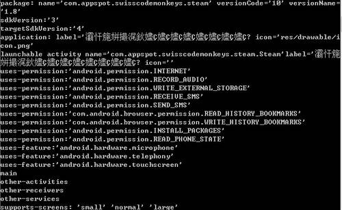 圖:增加的權(quán)限部分:加了收取和發(fā)送短信以及讀取和寫入書簽的權(quán)限
