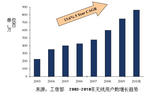 中國的移動(dòng)增值服務(wù)和移動(dòng)支付解決方案的發(fā)展與手機(jī)行業(yè)的增長(zhǎng)密切相關(guān)。根據(jù)工信部的調(diào)查,截止2009年年底,有7.47億人擁有手機(jī),其中2.33億的用戶曾至少使用一次手機(jī)瀏覽。工信部2010年4月發(fā)布的一份數(shù)據(jù)顯示,中國的無線用戶數(shù)在2010年底預(yù)計(jì)將達(dá)到8.64億,復(fù)合年均增長(zhǎng)率達(dá)14%,國內(nèi)電信行業(yè)的總營(yíng)收在2010年將增長(zhǎng)到4250億元。中國手機(jī)產(chǎn)業(yè)快速發(fā)展的趨勢(shì)主要是中產(chǎn)階層的推動(dòng)以及3G的發(fā)展。此外,艾瑞預(yù)測(cè),手機(jī)瀏覽器的的用戶數(shù)可能增長(zhǎng)125%達(dá)到2012年的5.24億。