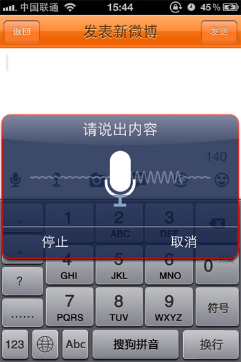 另外,在“發(fā)表新微博”輸入框底部,有明顯的語音輸入按鈕、位置定位等圖標,用戶點擊錄制微博,完畢后系統(tǒng)將會進行識別計算,最后以文字形式呈現(xiàn)在輸入框中。據(jù)悉,此種方式采用了科大訊飛語音輸入技術,但經(jīng)實際試用發(fā)現(xiàn),目前測試版本還還存在一定問題,對方言、同音字、語音速度、使用環(huán)境影響比較大,實際使用起來識別的效率并不高。