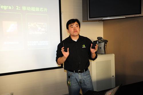 英偉達(dá)公司中國(guó)區(qū)公關(guān)經(jīng)理金洋先生展示天語(yǔ)和LG超級(jí)手機(jī)