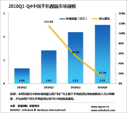根據(jù)Enfodesk易觀智庫近期發(fā)布數(shù)據(jù)顯示,2010年中國手機(jī)視頻市場規(guī)模達(dá)到6.81億元。
