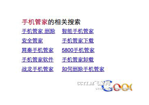 飛象網(wǎng)記者發(fā)現(xiàn)目前在搜索引擎中,伴隨著輸入“手機管家”一詞后出現(xiàn)的還有如“手機管家刪除”、“手機管家卸載”、“如何刪除手機管家”等詞語,而這些詞所呈現(xiàn)出的正式眾多用戶對于如何在自己手機中刪除這些手機管家的操作疑問。其中涉及如5800這樣的Symbian系統(tǒng)的手機,以及像DesireHD、Desire S、三星i9000等時下熱銷的Android機型。