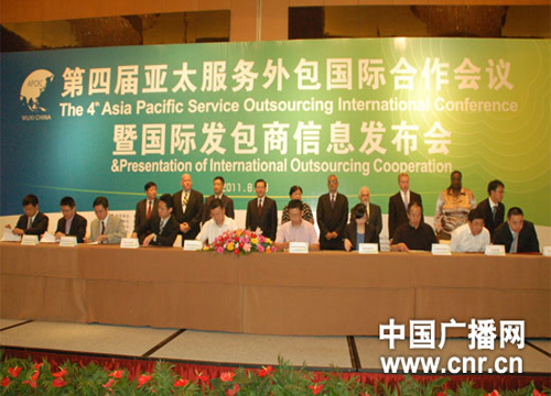 8月27日至29日,以“創(chuàng)新、融合、超越”為主題的第四屆亞太服務(wù)外包國際合作會(huì)議在江蘇無錫舉行。15個(gè)服務(wù)外包項(xiàng)目現(xiàn)場簽約,總金額約1.7億美元。