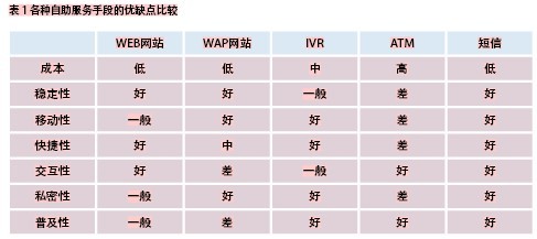 隨著電子化技術和互聯(lián)網技術的發(fā)展和普及,各家運營商都開始推出各種自助化手段分流人工服務壓力,改善用戶滿意度。主要的電子化自助手段有WEB網站、WAP網站、IVR語音交互應答、ATM自動柜員機。每種自助袷侄味加釁涓髯緣撓湃鋇恪?lt;br />