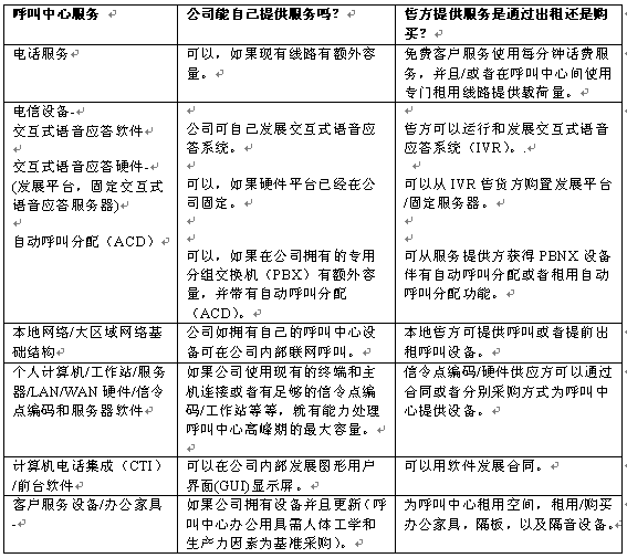 。。一旦決定從事呼叫中心業(yè)務(wù),公司必須確定要從外部售貨方購買的服務(wù)與設(shè)備的范圍。公司政策和經(jīng)營法則會指示其應(yīng)遵循什么程序進行這一過程。也可能會是一些合同,它們可以使公司能夠快速地完成這些步驟。
