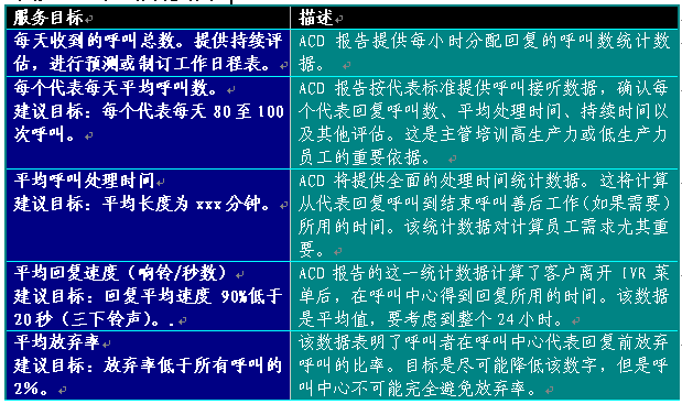 4) 服務水平問題的回答 每個工作日結束的時候,報告將通知中心是否達到預先設定的服務水平目標。
