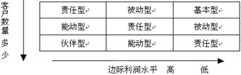 需要指出的是這5種程度的客戶關系類型并不是一個簡單的從優(yōu)到劣的順序,企業(yè)所能采用的客戶關系的類型一般是由它的產品以及客戶決定的, 比如寶潔公司它的洗發(fā)水、洗衣粉的客戶之間是一種被動性的關系:寶潔設立客戶抱怨處理機構,處理客戶投訴,改進產品;但是寶潔和沃爾瑪特之間卻可以建立互惠互利的伙伴性關系?铺乩崭鶕髽I(yè)的客戶數量以及企業(yè)產品的邊際利潤水平提供了一個表格幫助企業(yè)選擇自己和是的客戶關系類型。