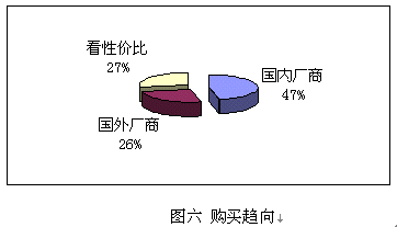 鑒于國(guó)內(nèi)并沒有知名度很高的CRM實(shí)施廠商,而國(guó)外的著名廠商在國(guó)內(nèi)的品牌宣傳也不足,所以調(diào)查表中只設(shè)了:國(guó)內(nèi)廠商、國(guó)外廠商和根據(jù)性價(jià)比進(jìn)行選擇三個(gè)項(xiàng)目,與購(gòu)買能力對(duì)照,預(yù)期實(shí)施金額在100萬以下的企業(yè),一般側(cè)重國(guó)內(nèi)廠商,而實(shí)施金額在100萬以上企業(yè)則側(cè)重國(guó)外企業(yè)。