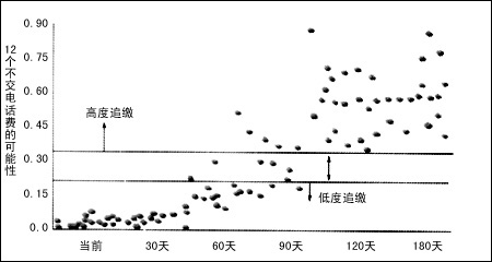 這樣,Bell Atlantic就能計算出有關(guān)客戶的概率可能性,包括客戶從一個月未交電話費到兩個月未交的可能性;客戶從三個月未交電話費到變成壞債的可能性,以及壞債客戶變成死債客戶的可能性。同時,還對追交拖欠電話費用的策略提供線索,確認哪些帳戶應(yīng)該進行追債活動;哪些帳戶有可能拖欠電話費;并且提供量化的追債策略,對不同的帳戶采用不同的辦法。