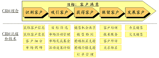 CRM在客戶生命周期的不同階段,都提供了相應的功能,來達到客戶滿意的目標。