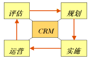 如圖所示,CRM的實施步驟是診斷-規(guī)劃-實施-評估的閉環(huán)的過程,保證了"大處著眼、小處入手、迅速見效"。這樣保證了既有長遠的規(guī)劃和目標,又能夠步步為營,鞏固實施成果。