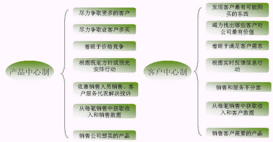蓋洛普認(rèn)為新型的企業(yè)與客戶的關(guān)系應(yīng)當(dāng)是以"客戶為中心"與客戶的互動關(guān)系,通過滿足客戶需求提高客戶滿意度來吸引和留住客戶,從而建立和保持企業(yè)的競爭優(yōu)勢。這其實(shí)就是從產(chǎn)品中心制到客戶中心制的演變的體現(xiàn),如下圖: