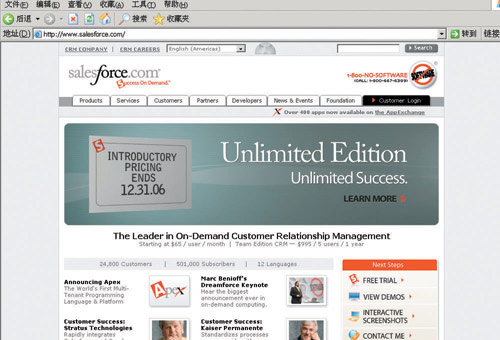 | 三大領(lǐng)域領(lǐng)先者 在線租用CRM時代已到 2006-11-08 |