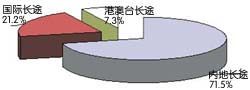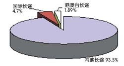 ● 中國IP電話國際長途通話時長已經占到國際長途話務量的20%,分流了大批的國際話務量,這也是固定電話國際長途話務量和港澳臺長途話務量出現負增長的主要原因。