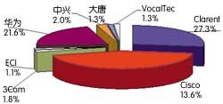 從圖3可以看出, Cisco、Clarent 和華為已經成為我國IP電話設備市場的主要供應商。
