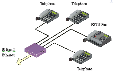 以太網(wǎng)相連,可支持兩個標(biāo)準(zhǔn)的電話終端進(jìn)行呼叫。