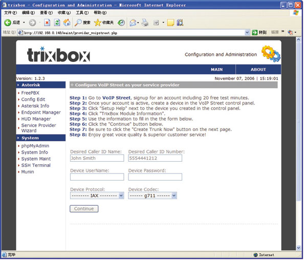 以往,我們使用一臺(tái)基于FreeBSD和Asterisk 1.2.4的PC機(jī)完成這個(gè)功能,在測(cè)試過(guò)程中,我們使用Trixbox,經(jīng)過(guò)簡(jiǎn)單配置,很快就實(shí)現(xiàn)了原有功能。
