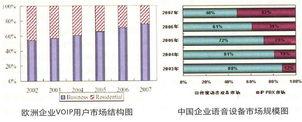 PBX設(shè)備市場規(guī)模在2007年將一舉超過傳統(tǒng)的PBX市場,IP通信的大規(guī)模部署和對傳統(tǒng)語音系統(tǒng)的替代已經(jīng)不可動搖。