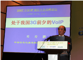 國務(wù)院發(fā)展研究中心局長鄧壽鵬的發(fā)言“處于我國3G前夕的VoIP”正式拉開了本次大會的序幕。鄧壽鵬局長的發(fā)言詳細闡述了3G和VoIP在中國的發(fā)展現(xiàn)狀,客觀分析了這兩個新技術(shù)存在的不足以及未來將帶來的巨大生產(chǎn)力進步和其中潛在的巨大商機, 對運營商傳統(tǒng)通信方式的沖擊以及對其轉(zhuǎn)型為全業(yè)務(wù)服務(wù)提供商的推動力。