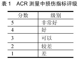 在ACR測量中,收聽者按照從1~5的5級損傷指標對一系列音頻文件進行分級(見表1)。