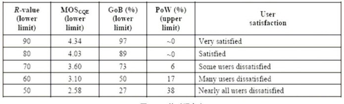 G.113 Appendix I,找到合適的Ie和Bpl值);第五步:根據(jù)終端類型,確定A值;第六步:計算R值,根據(jù)R和MOS的對照關系表,得到MOS值。