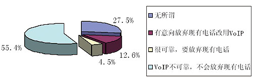 最近《華爾街日?qǐng)?bào)》刊載了YankeeGroup公司的調(diào)查報(bào)告,對(duì)美國(guó)人使用VoIP的趨向和目前的一些應(yīng)用狀況進(jìn)行了統(tǒng)計(jì),重點(diǎn)調(diào)查了美國(guó)人是否要放棄傳統(tǒng)的固定電話(huà)而改用VoIP,具體數(shù)據(jù)參見(jiàn)圖1。從圖中可見(jiàn)人們對(duì)放棄固定電話(huà)而改用VoIP的意向還不是很高,但已使用VoIP的人群卻是個(gè)龐大的群體,使用VoIP的人口比例已達(dá)15.1%,現(xiàn)使用人數(shù)已達(dá)到了4500多萬(wàn)戶(hù),具體見(jiàn)表1。另外,目前美國(guó)VoIP已從暴利行業(yè)轉(zhuǎn)向微利行業(yè),這點(diǎn)可以從Skype公司收入得到證明,詳見(jiàn)表2。