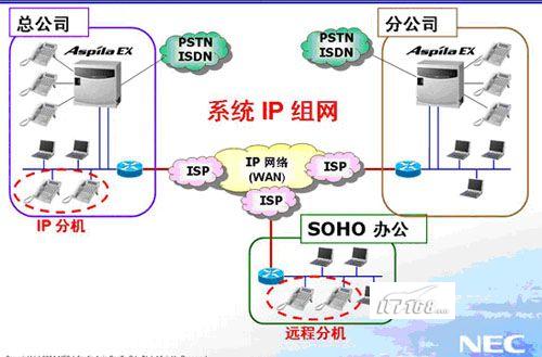 NEC英富醍公司可以為企業(yè)提供基于Aspila EX的企業(yè)VOIP解決方案,使用VOIPU板將IP網(wǎng)關(guān)集成進(jìn)Aspila EX就可以實(shí)現(xiàn)VOIP網(wǎng)絡(luò)與傳統(tǒng)PSTN電話系統(tǒng)的無縫連接。VOIPU板是一種類型的接口板,可以插在通用槽位,所有VOIP網(wǎng)關(guān)的設(shè)置可以通過Aspila EX的系統(tǒng)編程來實(shí)現(xiàn),Aspila EX不僅可以提供標(biāo)準(zhǔn)的VOIP中繼線,還可以提供一些有吸引力的功能,例如系統(tǒng)IP組網(wǎng)、IP分機(jī)以及遠(yuǎn)程分機(jī)等。
