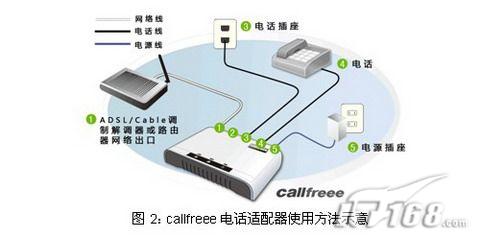 這不僅僅意味著用戶不需要高價(jià)購(gòu)買設(shè)備,不需要支付任何的月租費(fèi),更重要的是用戶不需要擔(dān)心設(shè)備廠商服務(wù)質(zhì)量下降甚至中斷設(shè)備的使用。而且callfreee電話適配器配置完成以后使用方式非常簡(jiǎn)單,用戶不需要更換電話機(jī)、變更電話號(hào)碼和和撥號(hào)方式,使用方法如下圖所示:
