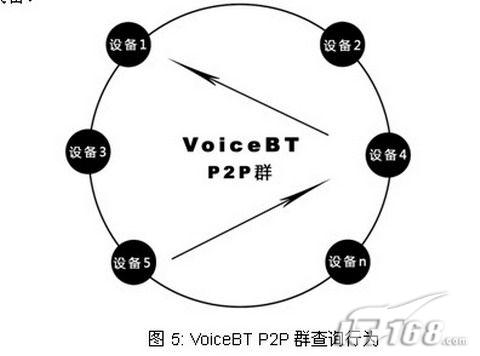 查詢行為如圖5所示:1—n 號(hào)設(shè)備組合在一起形成一個(gè)智能P2P群;第n號(hào)設(shè)備只要和第1-5號(hào)設(shè)備中的任意一個(gè)設(shè)備撥打過(guò)網(wǎng)絡(luò)電話,則第n號(hào)設(shè)備就加入了這個(gè)VoiceBT群。如果5號(hào)設(shè)備需要尋找1號(hào)設(shè)備,當(dāng)他發(fā)現(xiàn)1號(hào)設(shè)備的撥號(hào)序列和IP地址定位信息丟失以后,它可以向VoiceBT