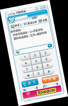 與傳統(tǒng)電話相比,UUcall的價(jià)格頗具吸引力。據(jù)了解,電腦使用該軟件并充值后,撥打全球任意手機(jī)、座機(jī),最低話費(fèi)為0.06元/分鐘,國(guó)內(nèi)長(zhǎng)途0.12元/分鐘,國(guó)際長(zhǎng)途至美國(guó)0.22元/分鐘。低廉的價(jià)格使UUcall等網(wǎng)絡(luò)電話擁有一大批在海外、異地求學(xué)、工作,且電話往來頻繁的客戶群。