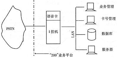 由于大多數(shù)“200”業(yè)務平臺采用的是上控機及語音卡系統(tǒng)(見圖1所示),由語音卡完成語音提示及交換處理,整體話務處理能力差,不太適合大中城市使用;另外其語音提示是經(jīng)過語音卡壓縮記錄在硬盤上,放音時經(jīng)讀盤、解壓恢復成語音信號,處理速度慢,交換占用總線資源,在話務量大時,易出現(xiàn)阻塞現(xiàn)象,并將影響現(xiàn)有的“200”業(yè)務。