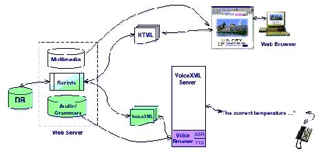 新的語(yǔ)音技術(shù)可以創(chuàng)建出對(duì)話驅(qū)動(dòng)的應(yīng)用程序,例如語(yǔ)音識(shí)別技術(shù)(ASR),語(yǔ)音合成技術(shù)(TTS)以及記錄和回放數(shù)字化語(yǔ)音在 PC 和服務(wù)器(分發(fā)到客戶端設(shè)備)上 。Voice XML 提供了一種與技術(shù)無(wú)關(guān)的語(yǔ)言,可以用在語(yǔ)音應(yīng)用程序。這些應(yīng)用程序?qū)⒑蠖颂幚碚Z(yǔ)音的服務(wù)和處理機(jī)制與前端基于 Voice XML 的表示層分離開(kāi)。例如,一個(gè)精心設(shè)計(jì)的 Web 站點(diǎn)可以輕而易舉地支持語(yǔ)音驅(qū)動(dòng)的瀏覽器(比如您很可能在移動(dòng)電話上會(huì)使用的那種),同時(shí)它有能支持其它的瀏覽器(比如一個(gè) WAP 瀏覽器或 HTML 瀏覽器)。當(dāng)接受到來(lái)自瀏覽器的最初請(qǐng)求時(shí),服務(wù)器將監(jiān)測(cè)出瀏覽器的類型。如果瀏覽器被確認(rèn)為一個(gè)語(yǔ)音瀏覽器,服務(wù)器將返回對(duì)應(yīng)的 Voice XML 頁(yè)面。