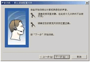 點擊"下一步"按鈕后,就會看到如圖11所示的對話框,請根據(jù)窗口中的提示對話信息朗讀,如果朗讀正確,對話信息將會反白顯示,如果你朗讀錯誤,請重新進行。