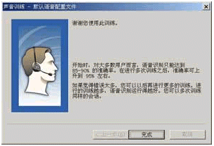 當你15分鐘的訓練全部結束后,將會看到如圖12所示的對話框,此時原來默認的用戶配置文件將用剛才所收集的訓練數(shù)據(jù)進行更新,稍候片刻,你就會看到如圖13所示的對話框,告訴你語音訓練已經結束。