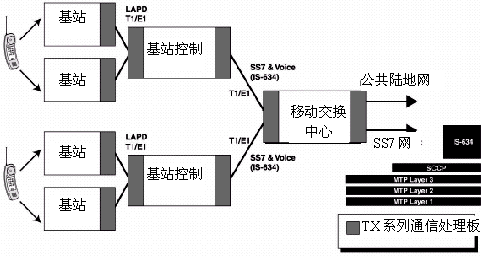 SS7也廣泛用作無線網(wǎng)和PSTN的接口信令,以及在不斷增加的無線網(wǎng)絡子系統(tǒng)之間。在GSM系統(tǒng)中,SS7還被用作基站控制中心(BSC)和移動交換中心(MSC)之間的信令。