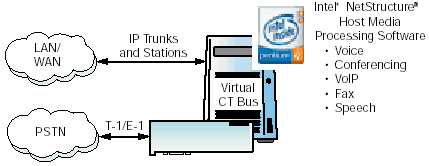- 第3層:PSTN或IP中繼線接口的Dialogic通信構建模塊;模擬、數字或IP站接口;以及語音、會議、傳真和話音(speech)資源。