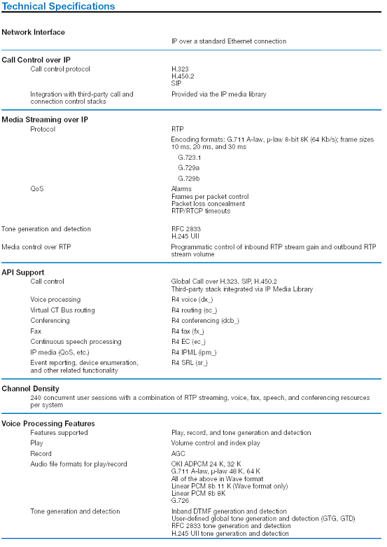 H.323 with H.450.2補(bǔ)充規(guī)定,SIP協(xié)議,Global call 支持。 |