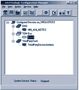 啟動Dialogic服務(wù)器上的DCM由系統(tǒng)的主控選擇確定,一旦主控服務(wù)器運行以后,所有的受控機可以同時啟動。單擊DCM上的綠色按鈕(o),服務(wù)器將試圖為DCM啟動服務(wù),當(dāng)服務(wù)啟動后,DCM的面板指示器依次顯示為綠色。