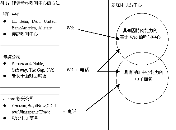 所有的公司都迫切希望找到一種途徑,使自己擁有“具有因特網(wǎng)能力的、web集成的呼叫中心”或“具有呼叫中心能力的電子商務(wù)網(wǎng)站”。圖1所示為實(shí)施方法的一個(gè)實(shí)例。但是,不管你如何稱(chēng)呼它,如何達(dá)到目標(biāo),你都會(huì)面臨處理多媒體聯(lián)系的挑戰(zhàn)。多媒體聯(lián)系中心包括通過(guò)電話(huà)簽定合同和處理來(lái)自web的合同,可能是通過(guò)電子郵件,文本交談,電話(huà)呼叫,或通過(guò)web的語(yǔ)音呼叫。并且,大多數(shù)時(shí)候是由同一組人處理多種媒體服務(wù)。